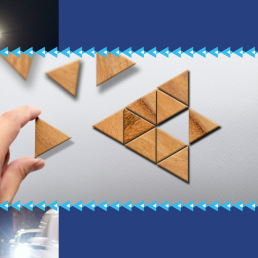 A forma é construída a partir de triângulos menores – como em um quebra-cabeças – simbolizando a versatilidade, criatividade e a capacidade adaptativa da instituição aos desafios.